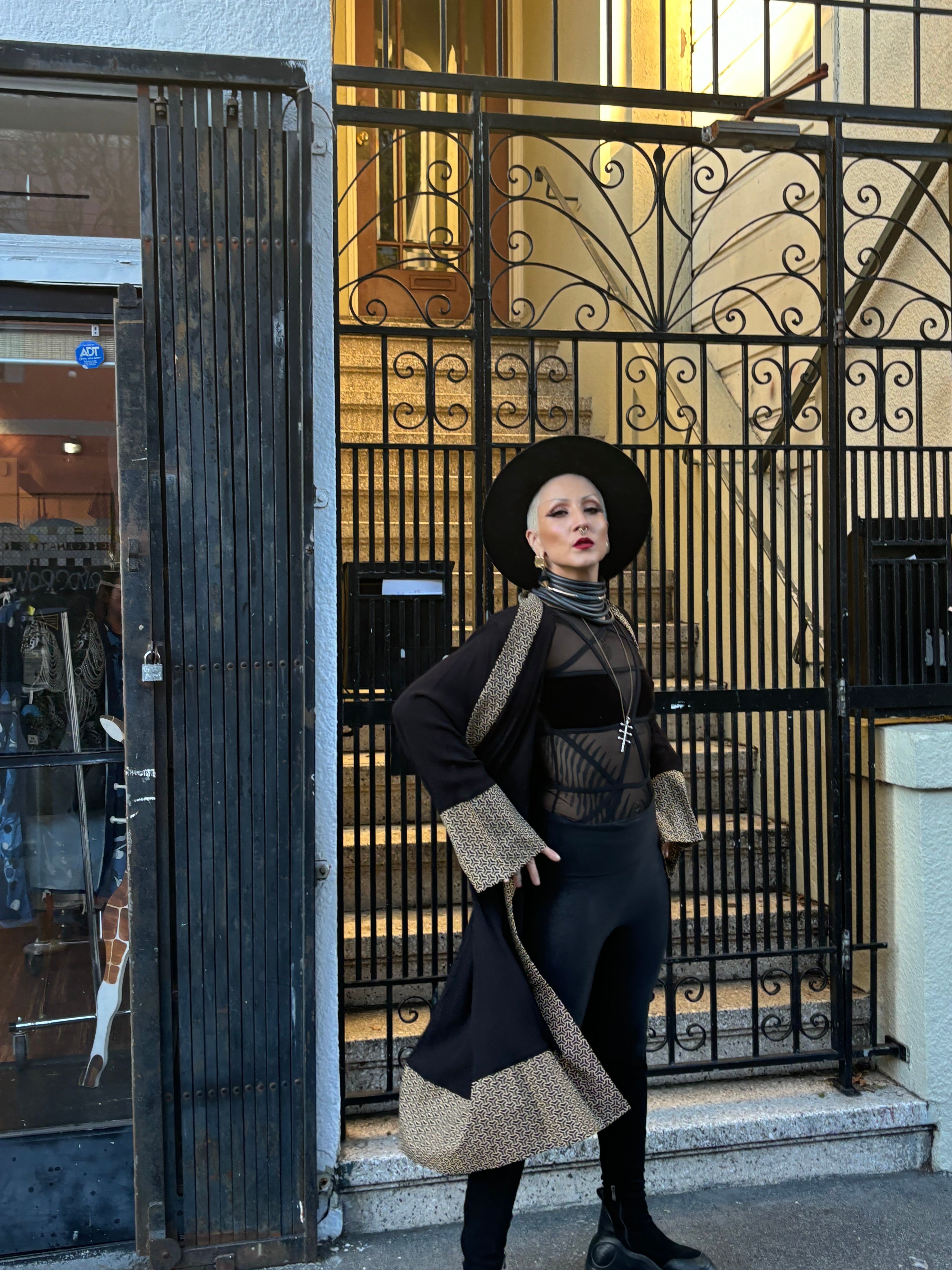 Focus on comfort and fluidity with our linen kimono in black which we have with 3 different prints- at the sleeves and on the back and in 2 sizes to dress both women and men.
