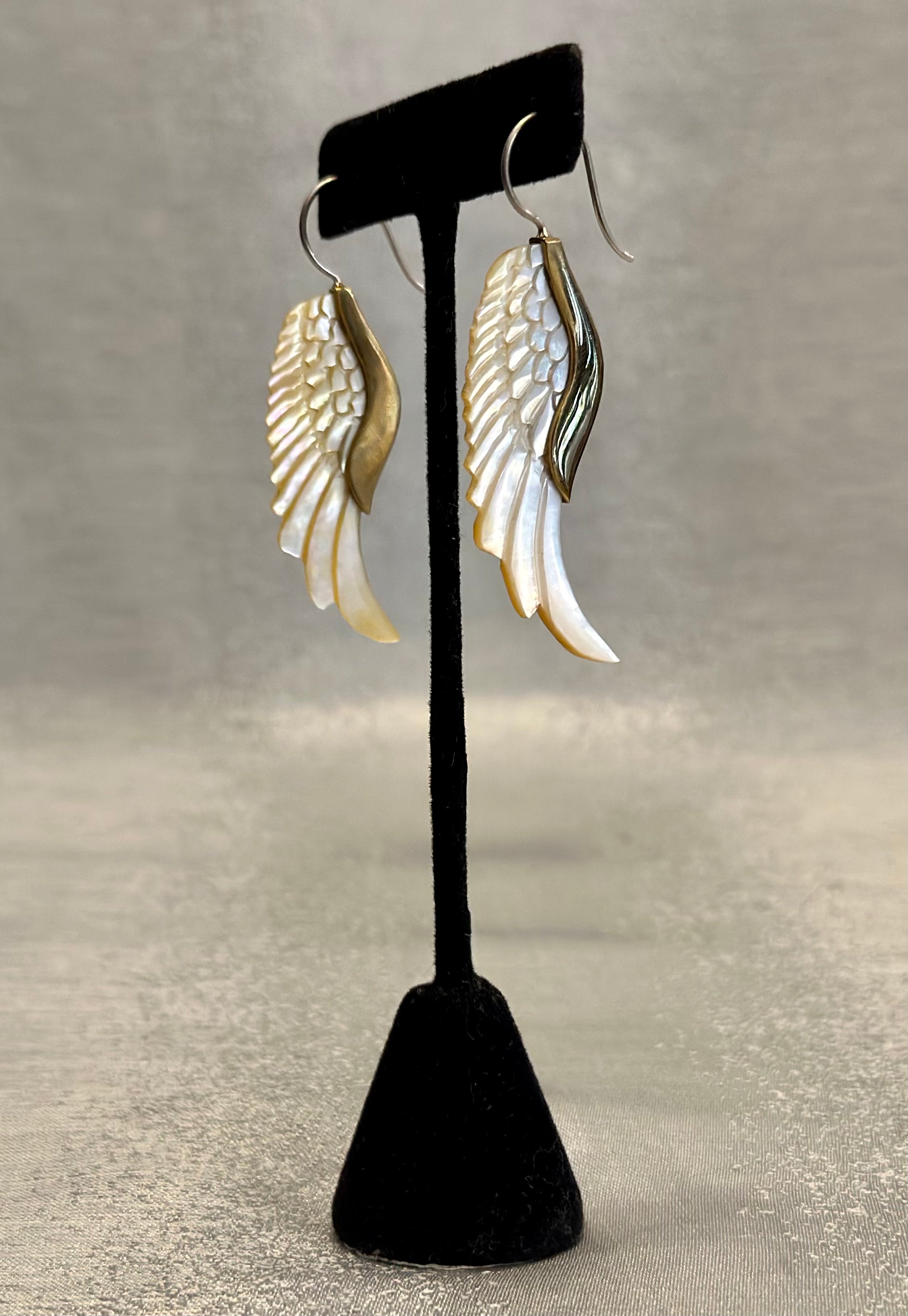 Mother of Pearl Shell Earrings with silver and brass for delicate ears or with just brass