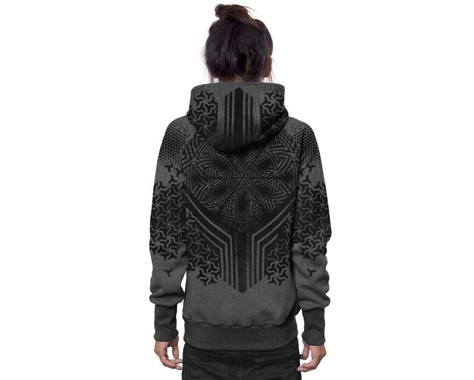 Comfy, grungy printed zip sweatshirt with front pockets and hood made by our friends at Plazmalab.